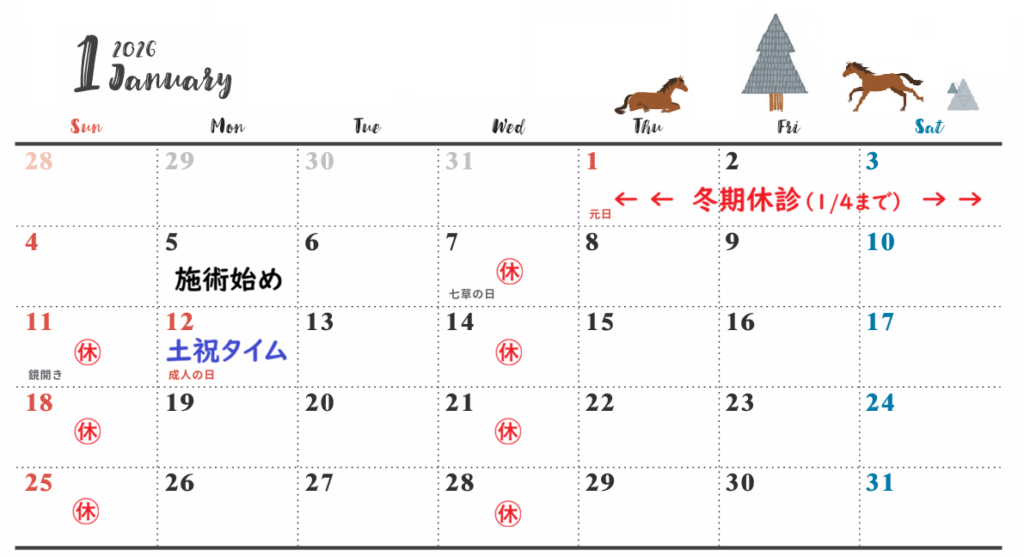 1/5(月)~ 1/20(火)まで、新春イベント開催中!ご来院の方全員に、お年玉(粗品)プレゼント!!