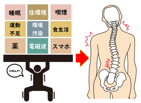 本来なら、そういった体の負担も自然治癒力で元に戻るものがキャパオーバーを起こし、痛みや痺れダルさなどの症状を引き起こします。